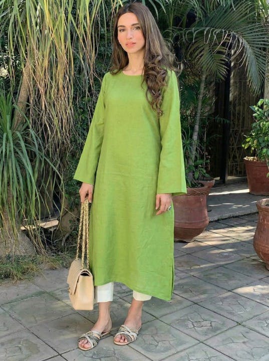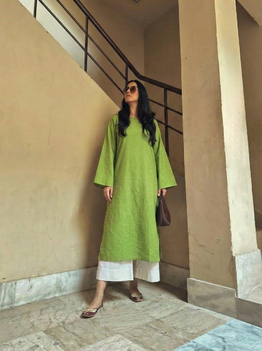 Step out in effortless elegance with this olive linen kurta, featuring loose sleeves that add graceful movement and subtle structure. Its relaxed silhouette pairs beautifully with beige pants, creating a chic and comfortable outfit perfect for leisurely brunches, city strolls, or casual day-out adventures.